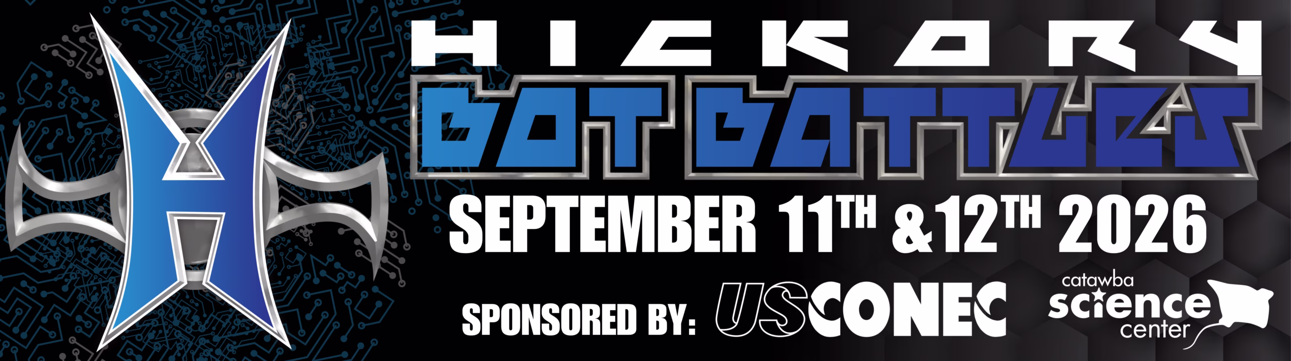 Catawba Science Center is proud to host the 8th annual Hickory Bot Battles combat robot competition, returning September 11th & 12th, 2026! Featuring over 100 competitive combat robot builders, robots weighing up to three pounds fight to the "death" in the 8’ x 8’ bullet-proof arena with a fiberglass floor.