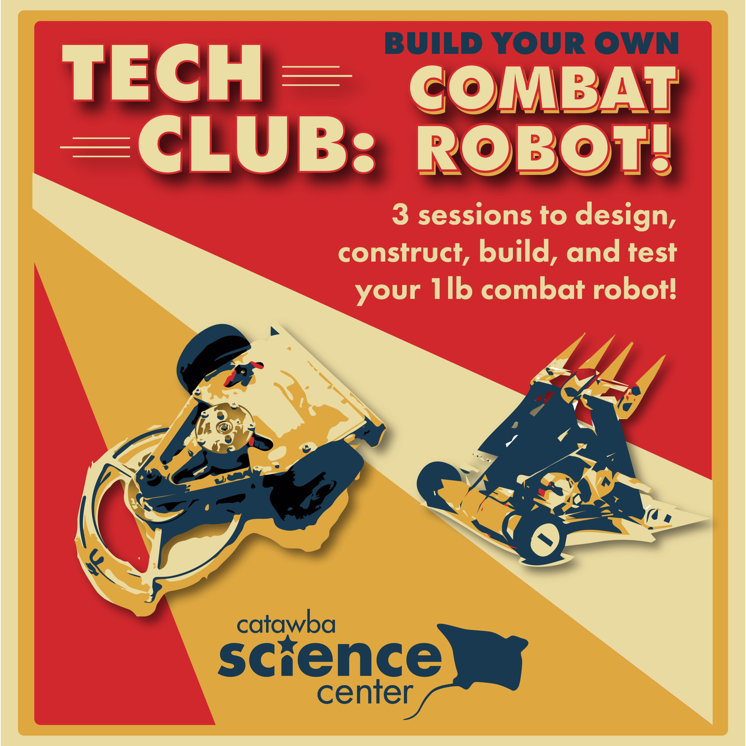 Each year, Catawba Science Center hosts a multi-week course to help you design, build, and program your 1-lb combat robot! The last class is a competition to test your bot in the ring, or save and register it for Hickory Bot Battles in September. Learn the basics to build your very own combat robot, including 3D printing, CAD software, and more!