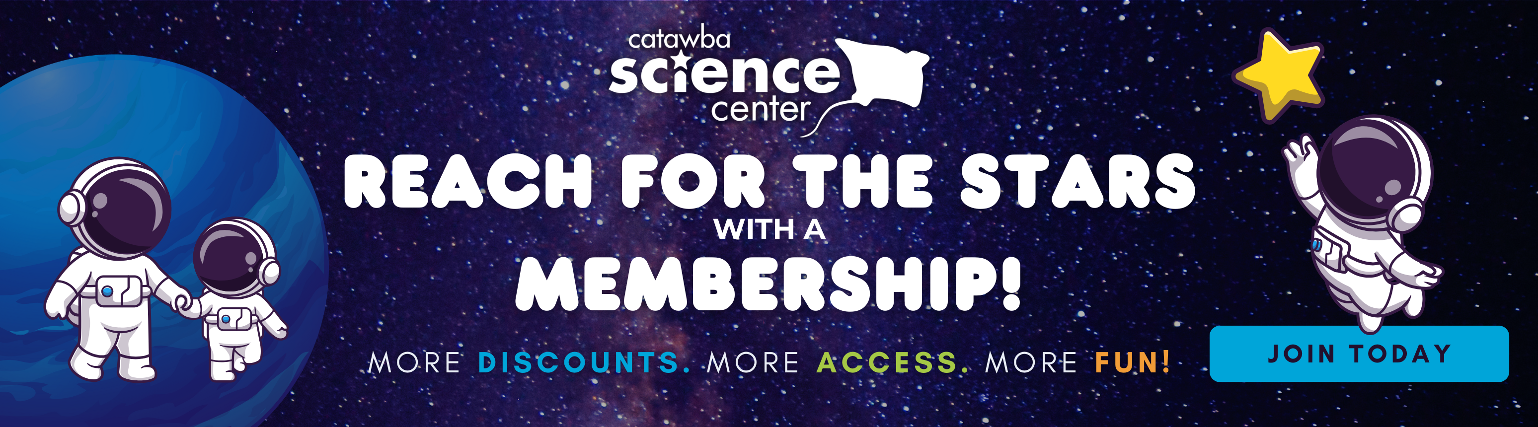 Membership at Catawba Science Center means you get MORE for your family: MORE savings, MORE access, and MORE fun! When you become a member, you also support to our mission to change lives and inspire learning through science and wonder by providing vital support for engaging exhibits, hands-on educational experiences, and care for the 500+ animals who call Catawba Science Center home. Membership offers the opportunity to explore CSC as often as you’d like, plus enjoy discounts on programs like Birthday Parties and Summer Camps for a full year!