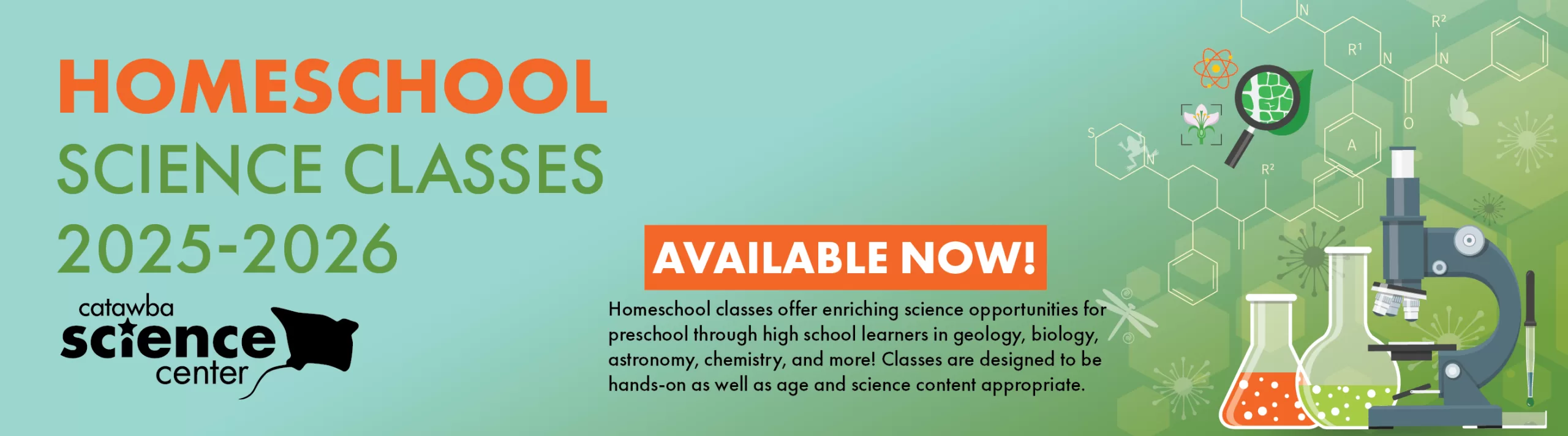 Homeschool classes offer enriching science opportunities for preschool through high school learners in geology, biology, astronomy, environmental science, and more! CSC offers science classes for students in grades Pre-K through High School.